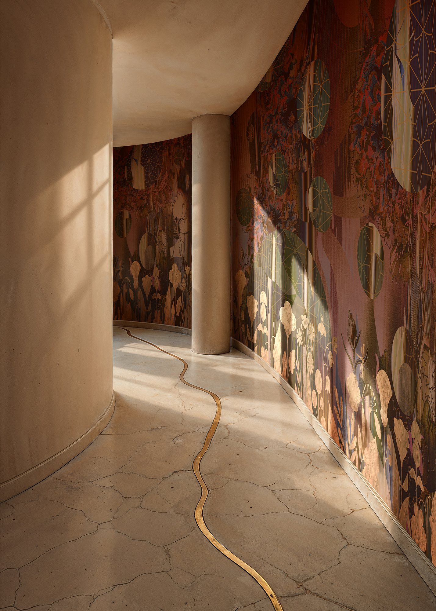 Each chapter arrives as a new movement in an ongoing composition. Motifs shift, palettes reinterpret, textures deepen. What remains constant is an unwavering architectural sensibility — the sense that every design belongs on a wall because it understands what a wall is.