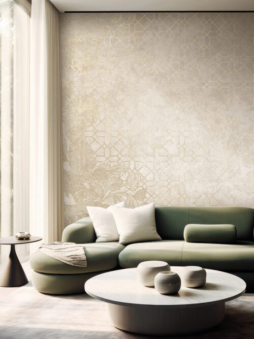 “Inspired by sculptural skylines and urban light, Manhattan Muse offers modern refinement with subtle geometry and tonal depth. Designed for penthouse settings, boutique lounges, and elevated residences. Fully customizable—printed to the exact dimensions of your wall for perfect scale and luxurious continuity.”
