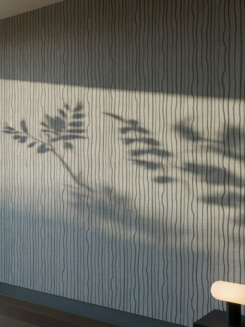 “Freehand verticality rendered with the quiet confidence of a master draughtsman. Softly undulating lines travel the full height of the wall against a cool linen-toned ground, introducing organic movement without noise. An effortless choice for residential living spaces, boutique hotel bedrooms, and commercial interiors where understated sophistication is the only brief.”