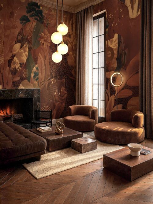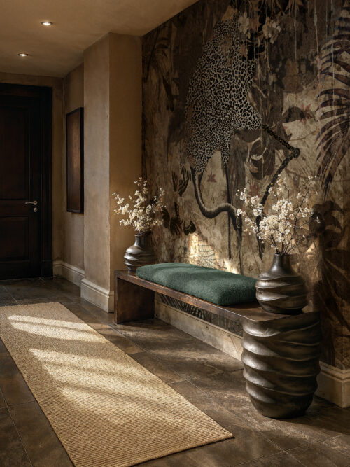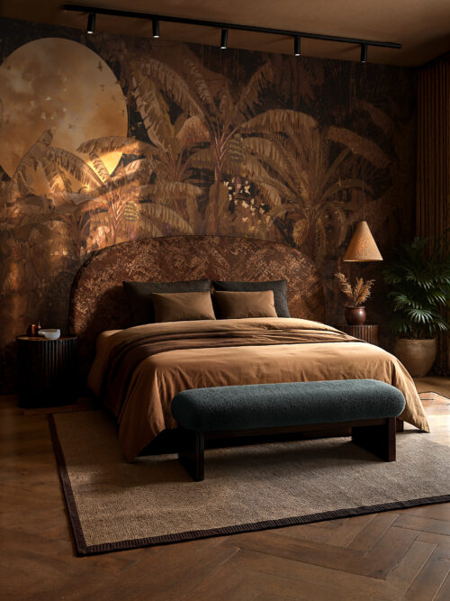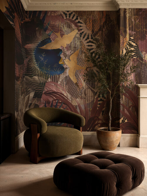 “Jungle Dusk captures the moment the canopy dims and the wild becomes intimate. It transforms restaurant walls, resort bedroom suites, and residential sitting rooms into enveloping sanctuaries of atmosphere.”