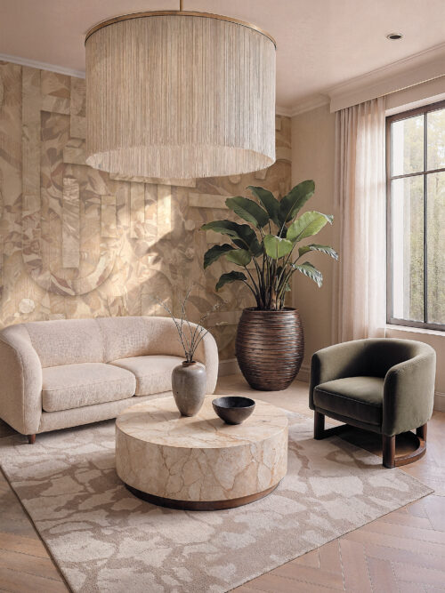 “Jupiter Blossom unites planetary scale with botanical delicacy in one arresting surface. It anchors five-star suite feature walls, resort common areas, and the dining rooms of homes built for entertaining.”