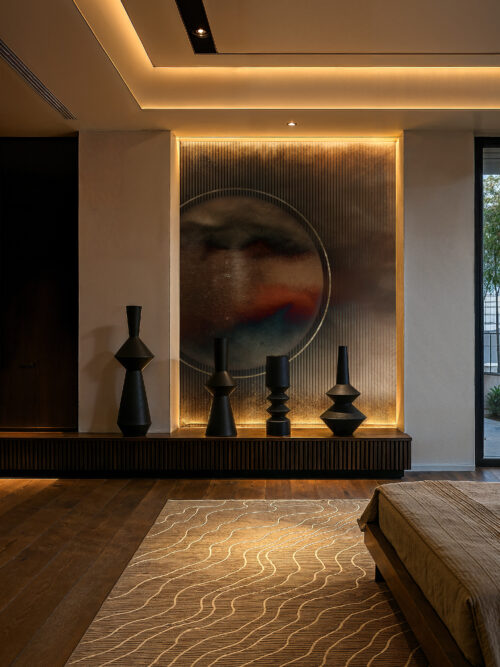 “Obira is a celestial meditation rendered in sweeping tonal movement. It commands feature walls in premium hotel suites and private residences alike, its luminous depths evoking the quiet authority of deep space.”
