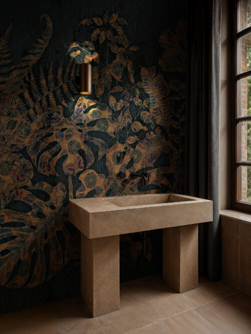 “Dark Bloom renders florals in shadow and depth rather than sweetness, introducing moody sophistication to restaurant feature walls, hotel bar environments, and master bedroom suites.”