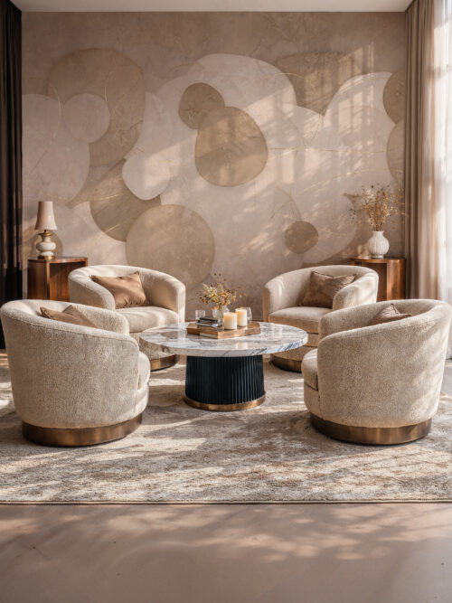 “Yoka is fluid, organic, and alive with movement. It suits boutique hotel reception areas and open-plan residential living rooms where a sense of effortless sophistication is the design brief.”