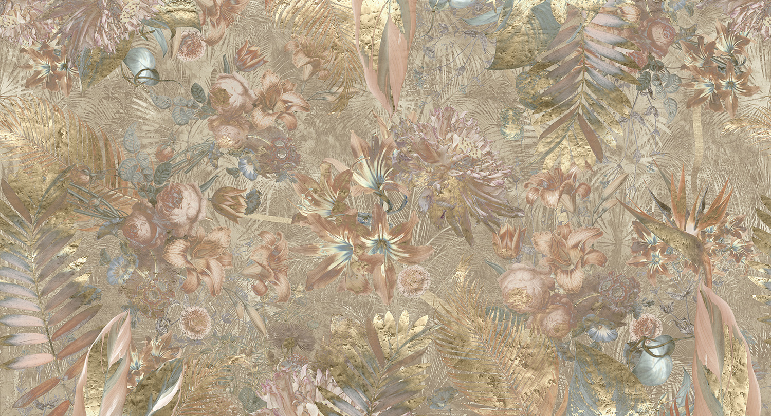“The Magari design offers a lush tropical affair of fauna and floral elements as a wall to wall wallpaper design. In beige, brown and teal colourways, this exceptional wallcovering would make a feature wall in a hotel bedroom or lobby. Each of the designs from the new Muance Amber collection is printed on high quality vinyl substrate and suitable for hospitality, commercial, office and residential interiors. All the Muance designs are custom printed to your wall size(s), so send us your measurements for a quote.”