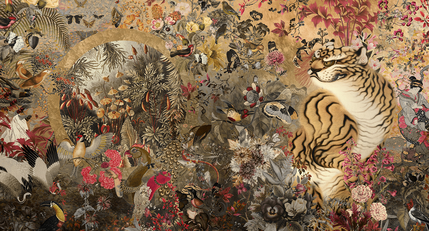 “The Eye of the Tiger design is powerfully beautiful with its majestic oriental touches. Create a bold statement in any room. Each of the designs from the new Muance Dusk collection is printed on high quality vinyl substrate and suitable for hospitality, commercial, office and residential interiors. All the Muance designs are custom printed to your wall size(s), so send us your measurements for a quote.”