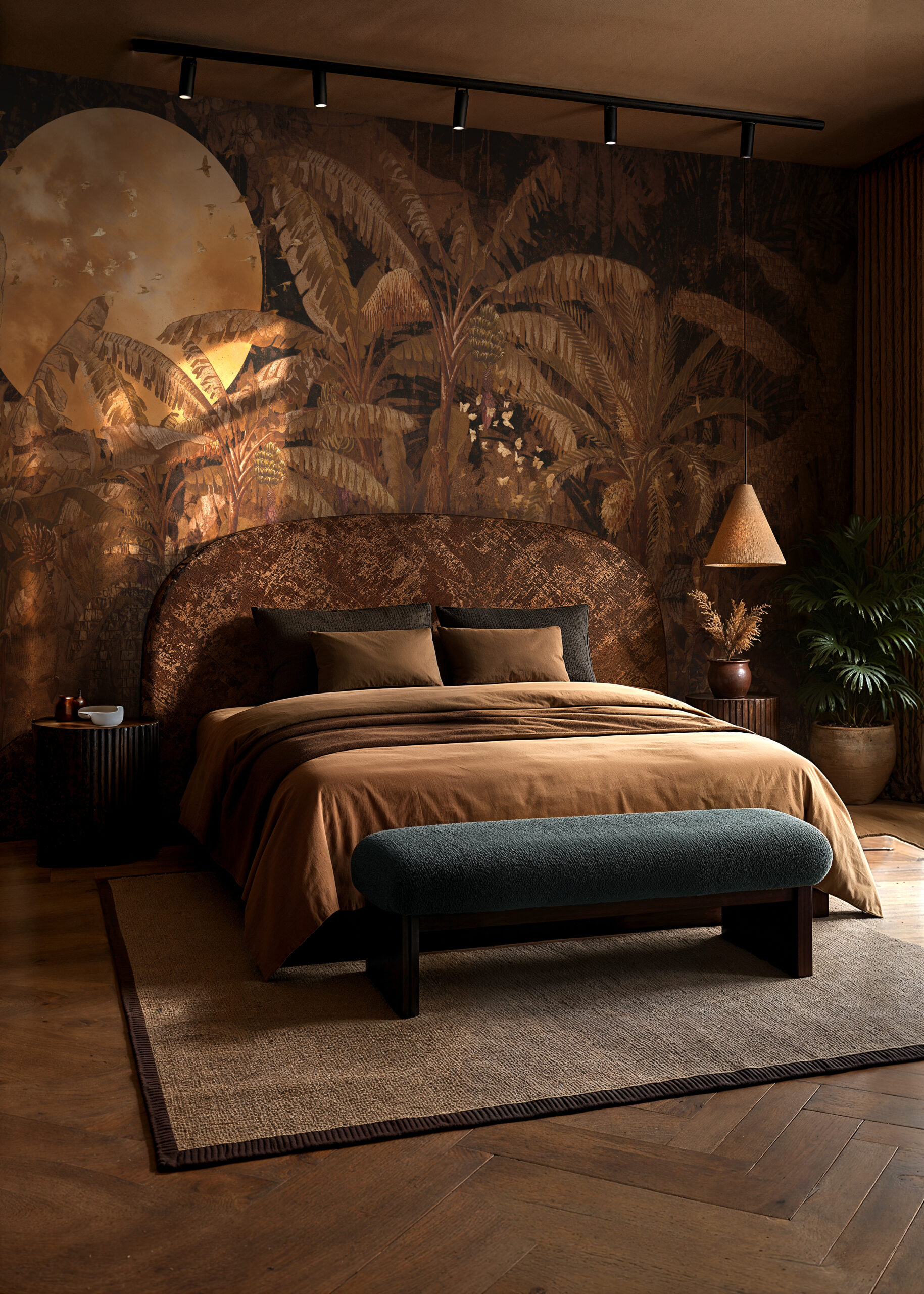 “Obira is a celestial meditation rendered in sweeping tonal movement. It commands feature walls in premium hotel suites and private residences alike, its luminous depths evoking the quiet authority of deep space.”