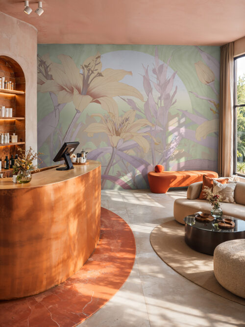 “Dust & Petals suspends the ephemeral between earth and bloom — mineral softness meeting floral dissolution in one quietly breathtaking surface. An instinctive choice for boutique hotel suites, residential bedrooms, and spa environments where fragility is understood as its own form of luxury.”