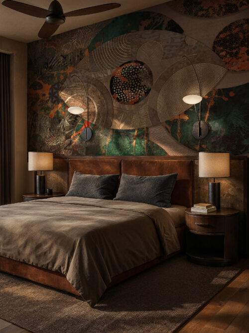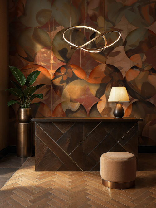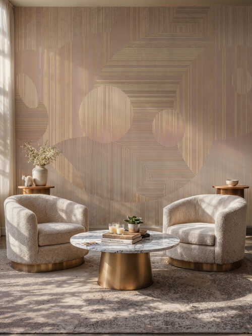“Inspired by sculptural skylines and urban light, Manhattan Muse offers modern refinement with subtle geometry and tonal depth. Designed for penthouse settings, boutique lounges, and elevated residences. Fully customizable—printed to the exact dimensions of your wall for perfect scale and luxurious continuity.”