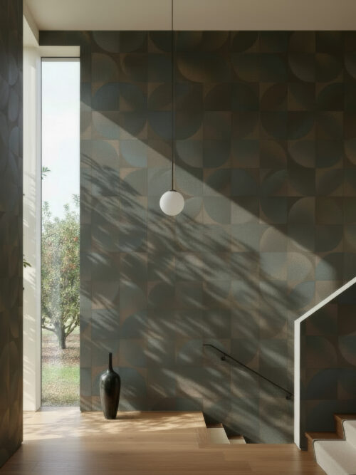 “The Tesseract design captures the subtle nuances of the desert landscape at dusk. This striking custom wallpaper would dazzle as a feature wall in a restuarant. The new Muance Dusk collection is printed on high quality vinyl substrate and suitable for hospitality, commercial, office and residential interiors. All the Muance designs are custom printed to your wall size(s), so send us your measurements for a quote.”